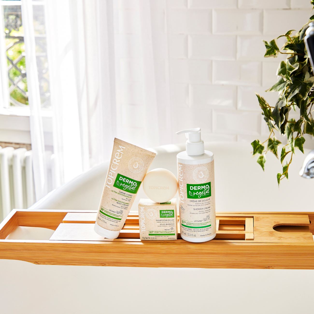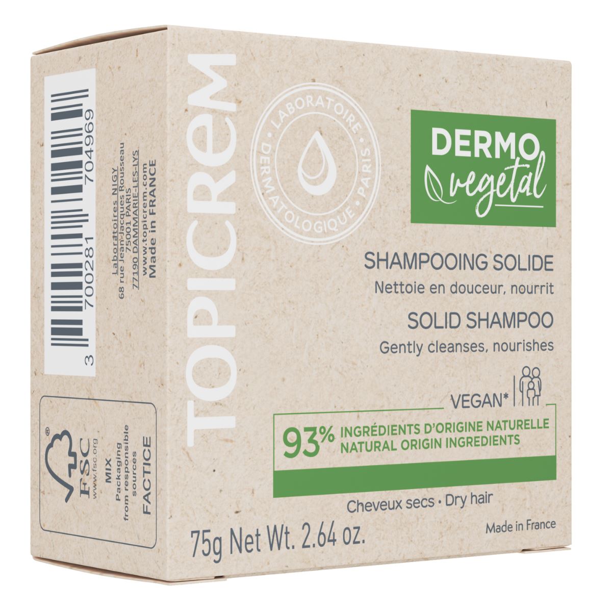 TOPICREM DERMOVEGETAL მყარი შამპუნი ნაზად წმენდს და კვებავს მთელი ოჯახის მშრალ თმას, 3 წლის ასაკიდან. ვეგანური, 93% ნატურალური წარმოშობის ინგრედიენტებითა და ორგანული ქოქოსის ზეთით გამდიდრებული ჩვენი მყარი შამპუნი იცავს გამოშრობისგან, რათა თმა იყოს ელასტიური, რბილი და ბზინვარე. მისი უხვი ქაფისა და სასიამოვნო სურნელის წყალობით, მისი გამოყენება ძალიან კომფორტული და სასიამოვნოა.