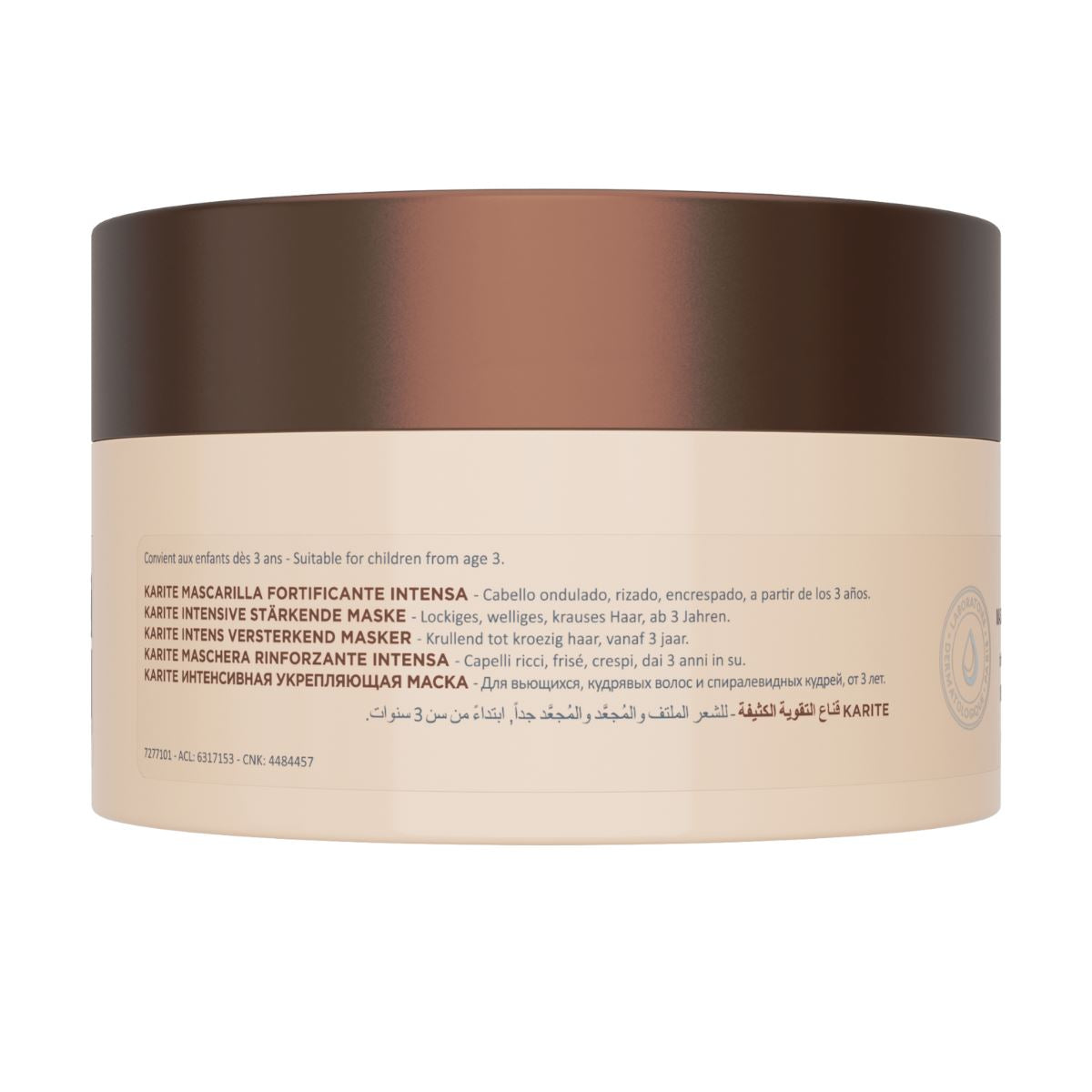 KARITE ინტენსიური გამაძლიერებელი ნიღაბი ასწორებს თმას და ინტენსიურად კვებავს, მისი დამძიმების გარეშე. თმის ნიღაბი ამშვიდებს მგრძნობიარე სკალპს. თმა ძლიერდება ძირებიდანვე და ხდება ჯანსაღი ტრადიციული და დერმატოლოგიური ინგრედიენტების ტრიოს წყალობით: შის კარაქი, ამლას ექსტრაქტი და პანთენოლი.